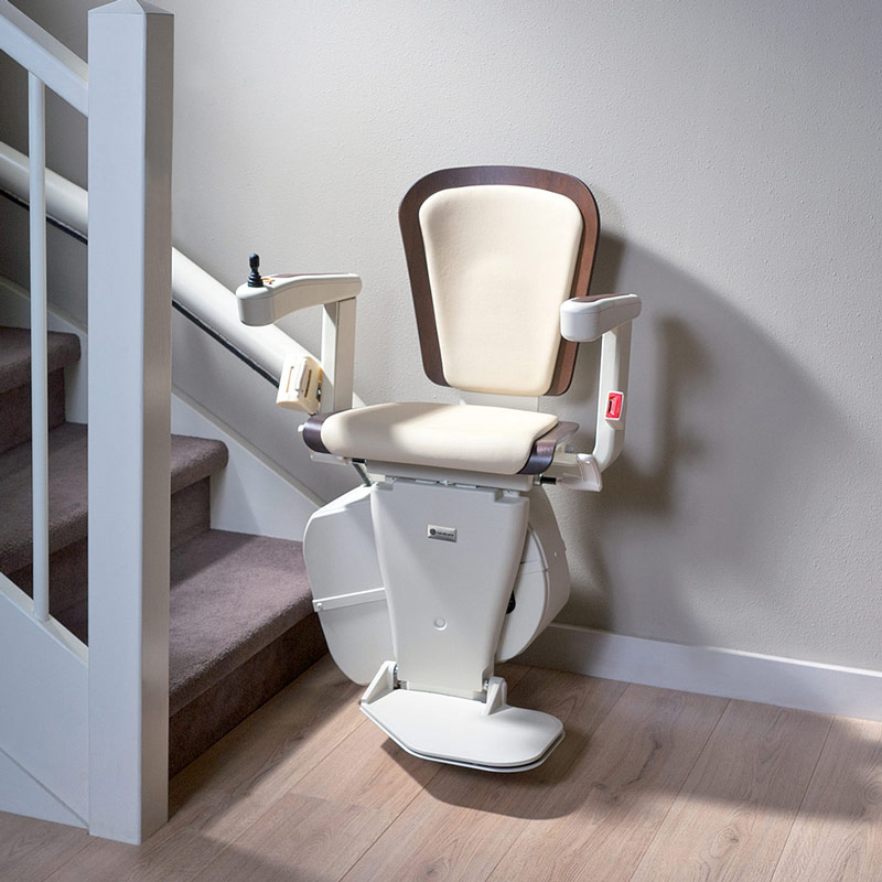 Para além de todas as funções standard, permite o upgrade para o apoio automático de pés (ao fechar o assento o apoio de pés rebate automaticamente) e o assento com rotação automática possibilita um desembarque prático e seguro do utilizador no patamar superior.