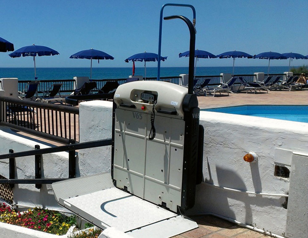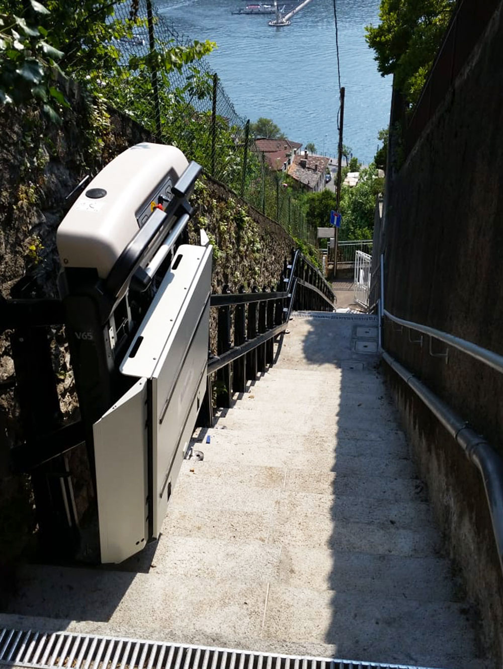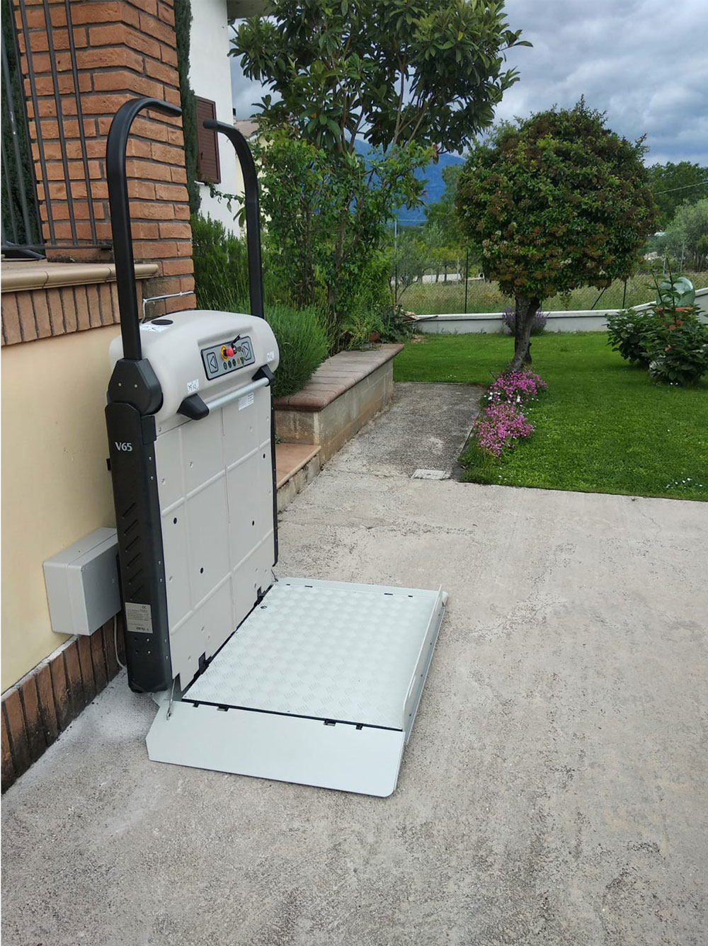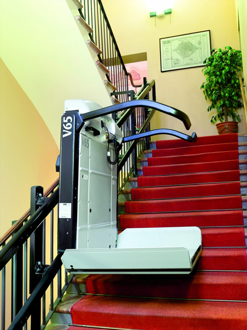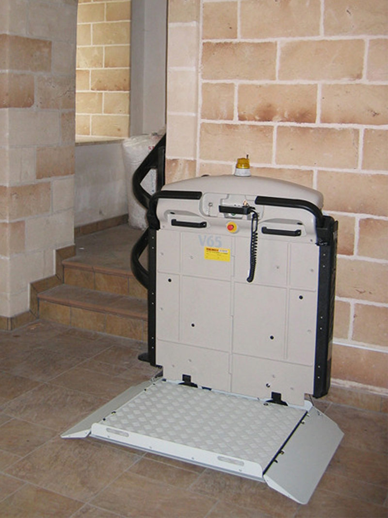 A V65 é capaz de superar inclinações retas ou variáveis, adaptando-se a inclinações de uma rampa ou de um lance de escadas.